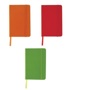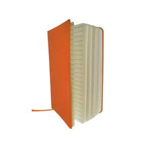 Cuaderno chico con elástico, contiene 80 hojas de raya en color beige